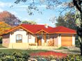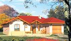 Dom budowany w technologii murowej. Strop o konstrukcji drewnianej. Dach pokryty dachówką cementową lub ceramiczną. Elewacje wykończone tynkiem barwionym i drewnem.