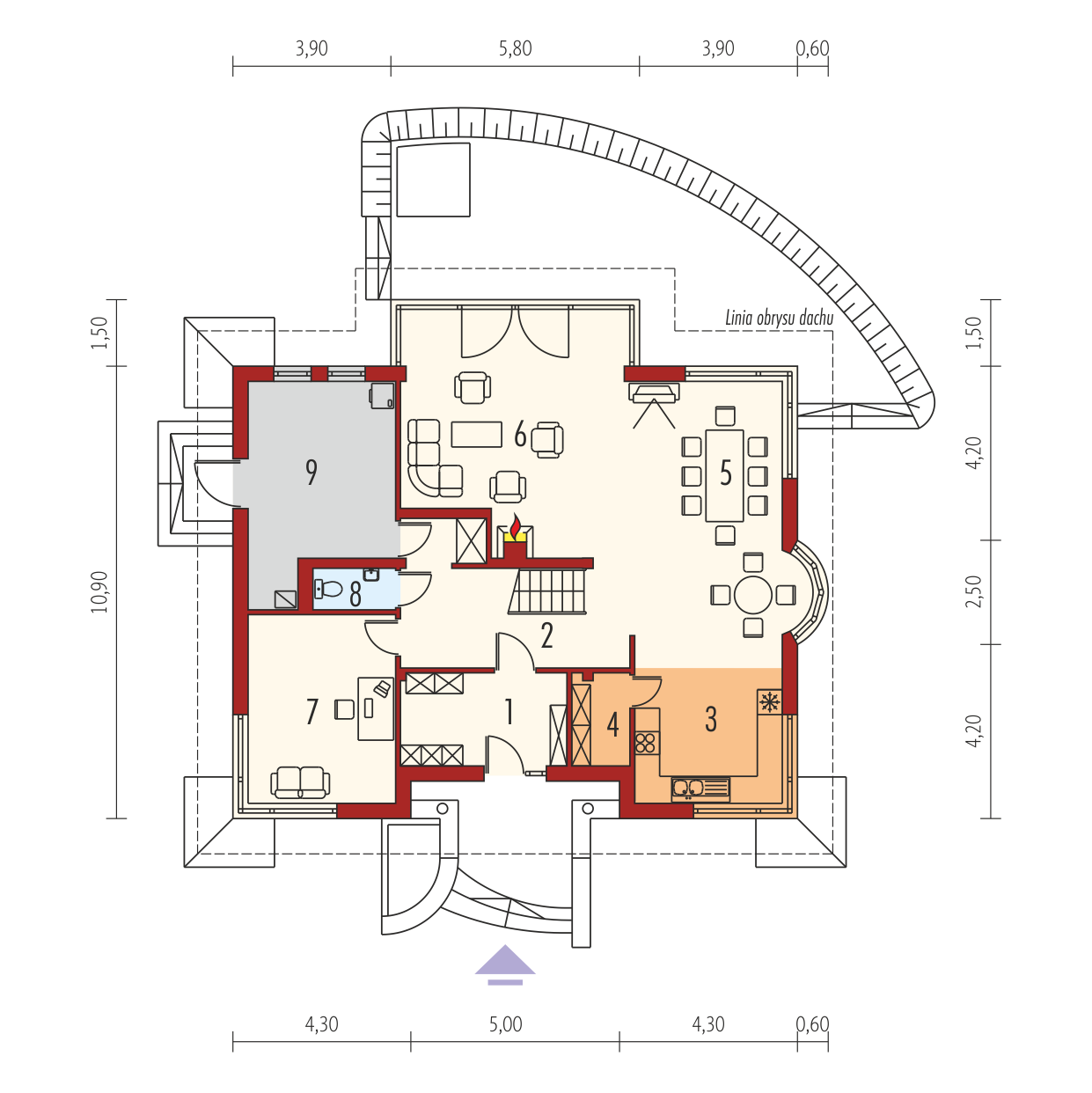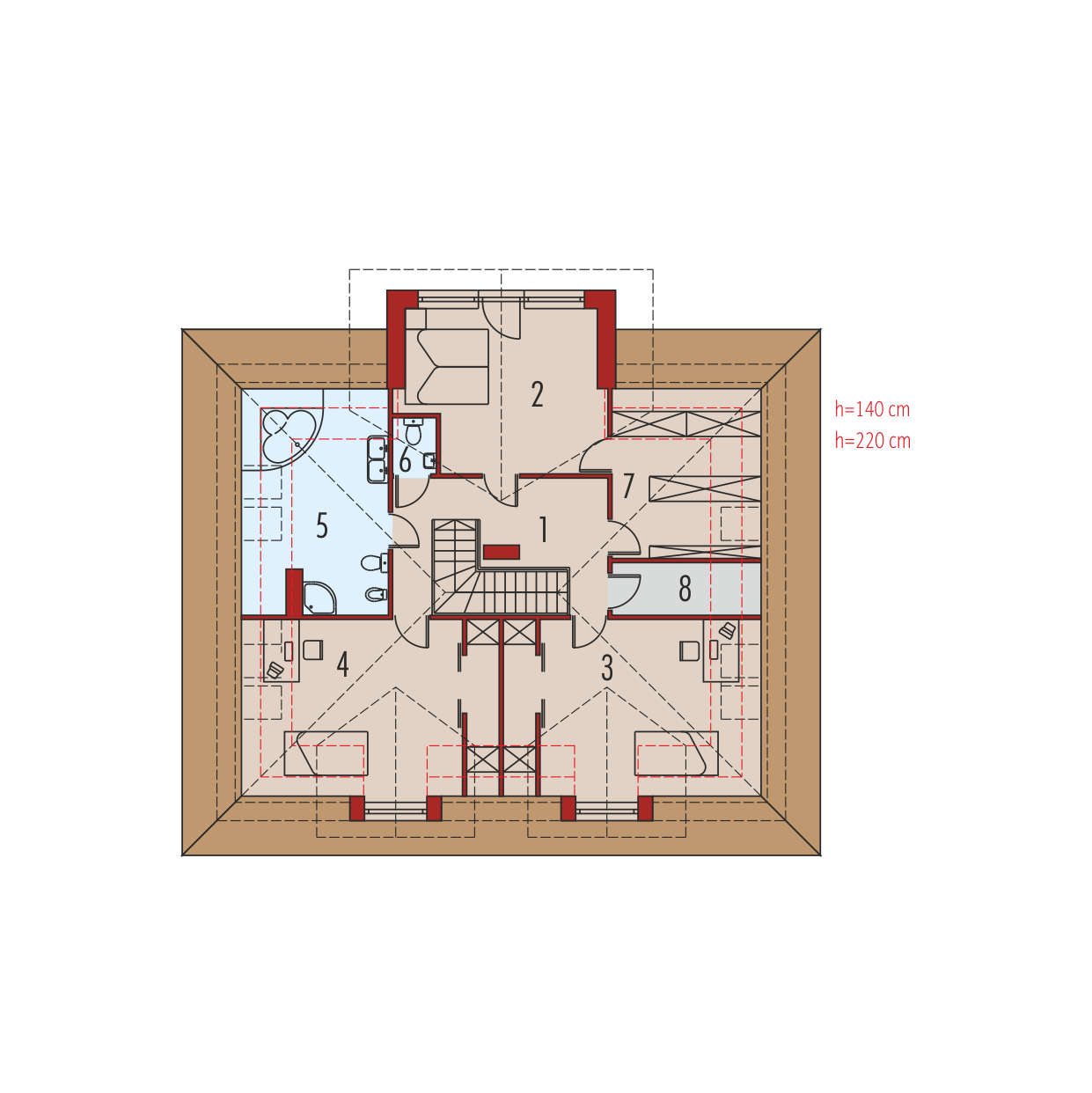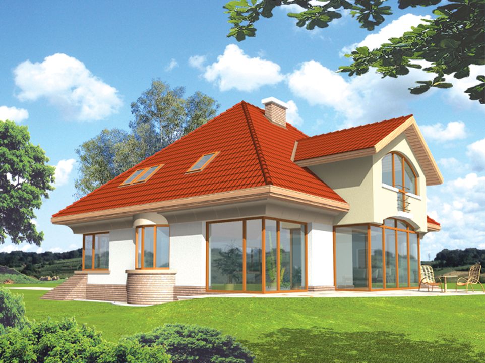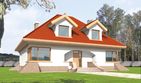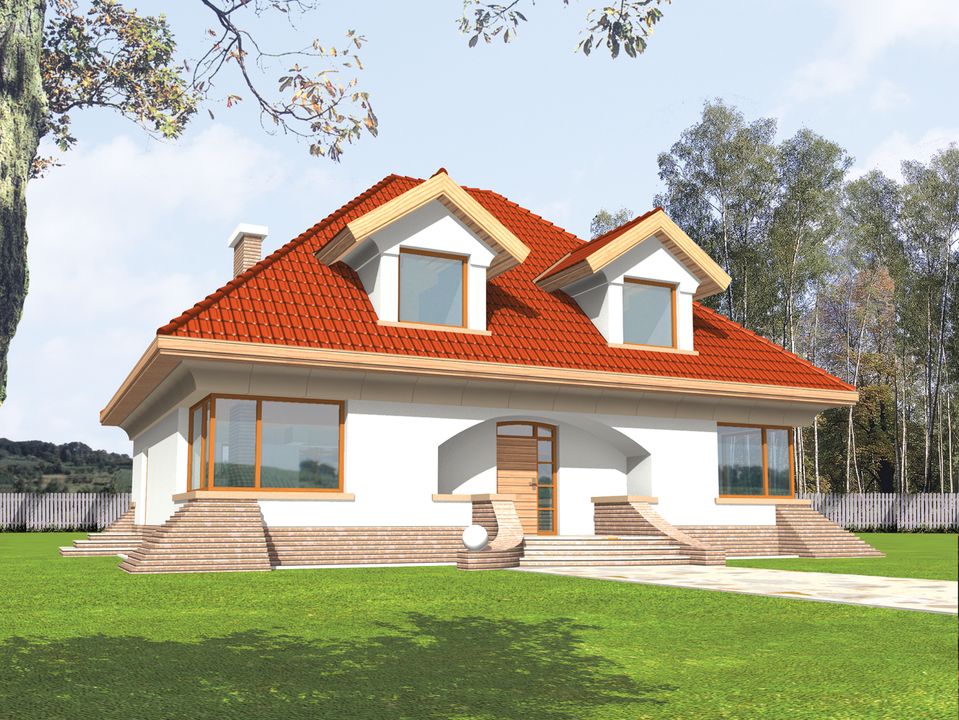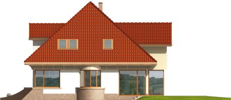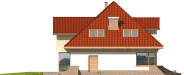 Graficzne opracowanie rzutów poglądowych widocznych na karcie projektu zostało wykonane przez Extradom.pl. Prezentowane przez Extradom.pl wizualizacje wykonane zostały przez autora projektu i należy poczytywać je jedynie za przykład i propozycję wykończenia, wizję architektoniczną autora projektu. Ostateczne wykończenie budynku może nastąpić na wiele sposobów. Szczegółowe rozwiązania zastosowane w oferowanej dokumentacji - w tym również ilość, lokalizacje i wygląd okien, drzwi, kominów - mogą w niewielkim stopniu różnić się od prezentowanej wizualizacji budynku.