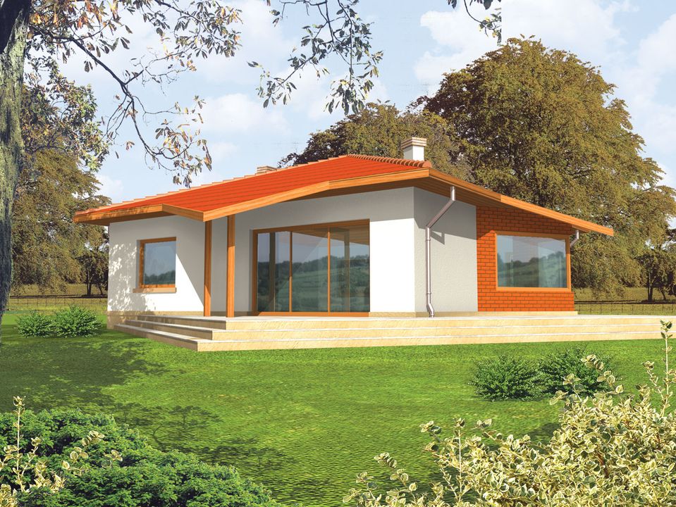 Graficzne opracowanie rzutów poglądowych widocznych na karcie projektu zostało wykonane przez Extradom.pl. Prezentowane przez Extradom.pl wizualizacje wykonane zostały przez autora projektu i należy poczytywać je jedynie za przykład i propozycję wykończenia, wizję architektoniczną autora projektu. Ostateczne wykończenie budynku może nastąpić na wiele sposobów. Szczegółowe rozwiązania zastosowane w oferowanej dokumentacji - w tym również ilość, lokalizacje i wygląd okien, drzwi, kominów - mogą w niewielkim stopniu różnić się od prezentowanej wizualizacji budynku.