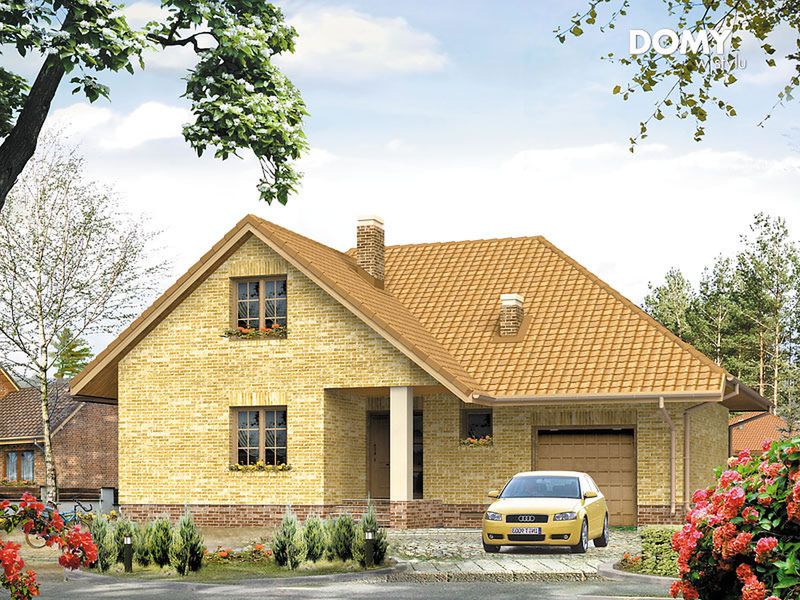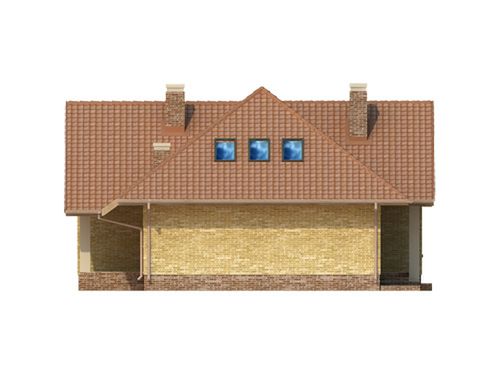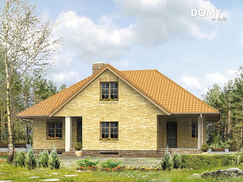 Graficzne opracowanie rzutów poglądowych widocznych na karcie projektu zostało wykonane przez Extradom.pl. Prezentowane przez Extradom.pl wizualizacje wykonane zostały przez autora projektu i należy poczytywać je jedynie za przykład i propozycję wykończenia, wizję architektoniczną autora projektu. Ostateczne wykończenie budynku może nastąpić na wiele sposobów. Szczegółowe rozwiązania zastosowane w oferowanej dokumentacji - w tym również ilość, lokalizacje i wygląd okien, drzwi, kominów - mogą w niewielkim stopniu różnić się od prezentowanej wizualizacji budynku.