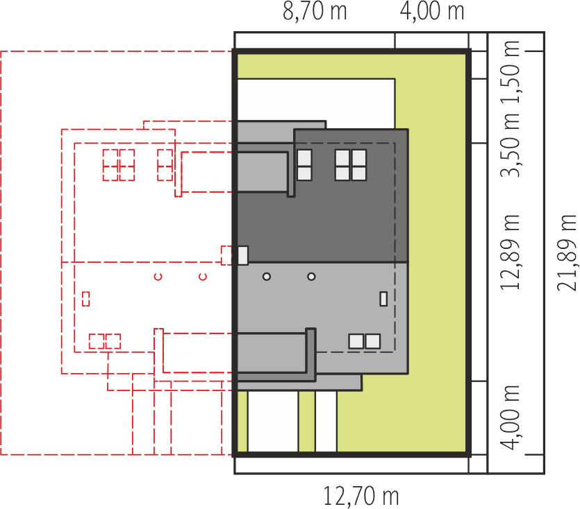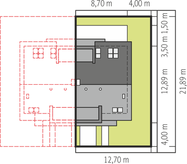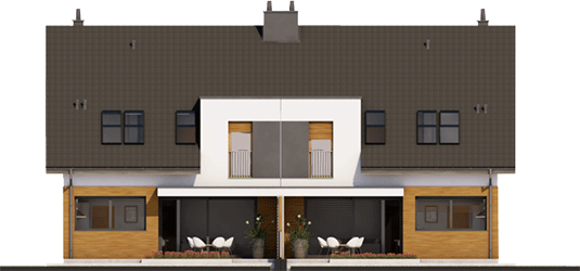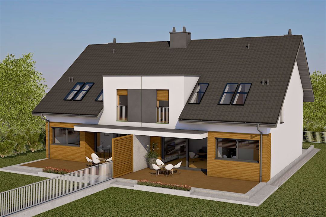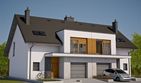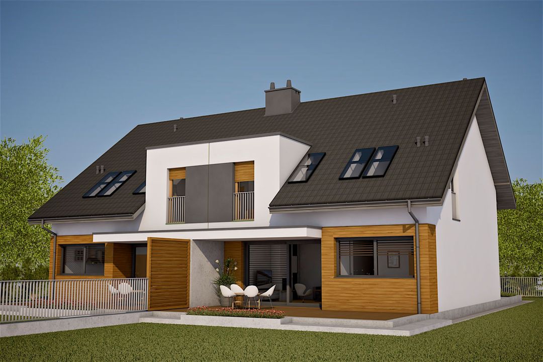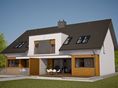 Graficzne opracowanie rzutów poglądowych widocznych na karcie projektu zostało wykonane przez Extradom.pl. Prezentowane przez Extradom.pl wizualizacje wykonane zostały przez autora projektu i należy poczytywać je jedynie za przykład i propozycję wykończenia, wizję architektoniczną autora projektu. Ostateczne wykończenie budynku może nastąpić na wiele sposobów. Szczegółowe rozwiązania zastosowane w oferowanej dokumentacji - w tym również ilość, lokalizacje i wygląd okien, drzwi, kominów - mogą w niewielkim stopniu różnić się od prezentowanej wizualizacji budynku.