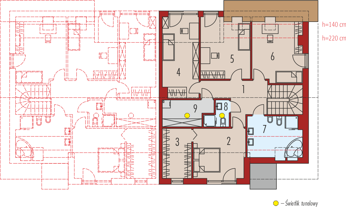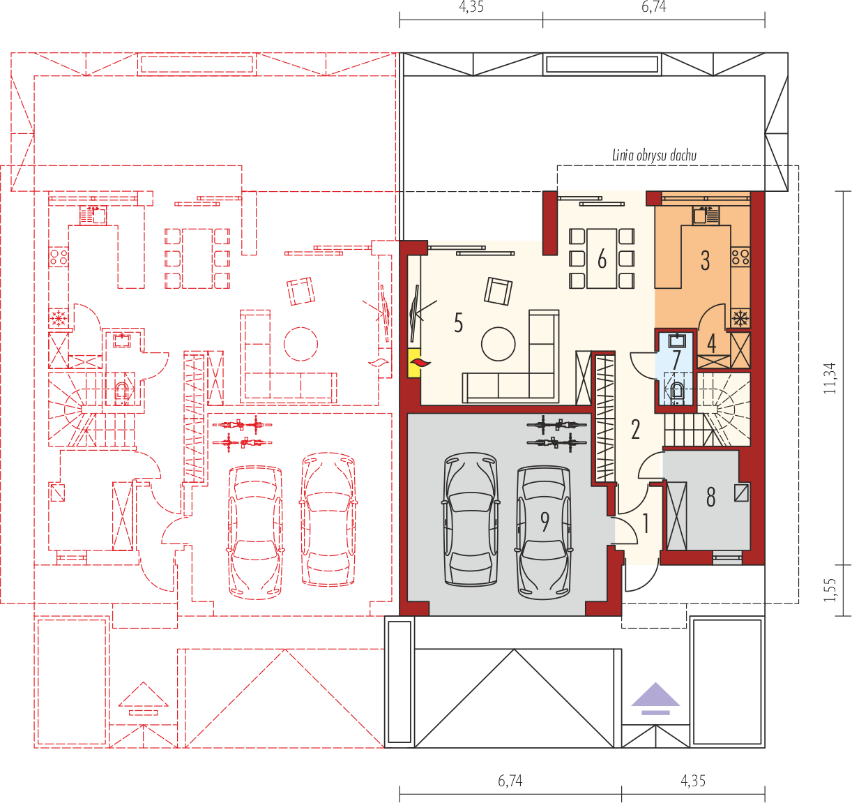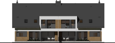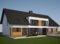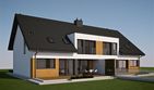 Graficzne opracowanie rzutów poglądowych widocznych na karcie projektu zostało wykonane przez Extradom.pl. Prezentowane przez Extradom.pl wizualizacje wykonane zostały przez autora projektu i należy poczytywać je jedynie za przykład i propozycję wykończenia, wizję architektoniczną autora projektu. Ostateczne wykończenie budynku może nastąpić na wiele sposobów. Szczegółowe rozwiązania zastosowane w oferowanej dokumentacji - w tym również ilość, lokalizacje i wygląd okien, drzwi, kominów - mogą w niewielkim stopniu różnić się od prezentowanej wizualizacji budynku.