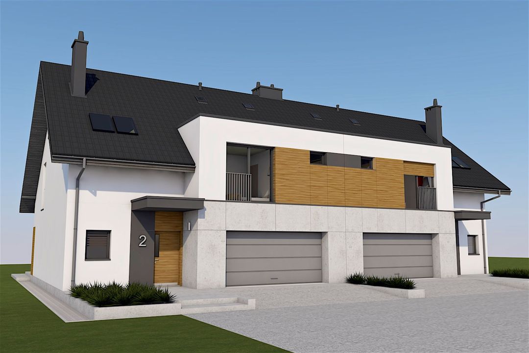 Ściany zewnętrzne: murowane, dwuwarstwowe, beton komórkowy firmy H+H 24 cm, ocieplenie styropian Termo Organika 20 cm. Ściany wewnętrzne: nośne i działowe murowane, beton komórkowy firmy H+H 24 cm i 12 cm. Strop: międzypiętrowy gęstożebrowy Teriva, ocieplenie wełna mineralna Isover 30 cm. Dach: konstrukcja drewniana, ocieplenie wełna mineralna Isover 30 cm, dachówka ceramiczna firmy Röben. Inne: schody wewnętrzne drewniane. Ogrzewanie: kocioł gazowy kondensacyjny firmy Viessmann, rozprowadzenie ciepła: grzejniki firmy Purmo. Wentylacja: grawitacyjna. OZE: kolektory słoneczne firmy Viessmann. Dodatkowo: stacja uzdatniania wody firmy Viessmann. Elewacje: tynk cienkowarstwowy mineralny w kolorze białym TO-PA001 i szarym TO-GY011 z palety firmy Termo Organika, okładzina drewniana, okładzina z płyt imitujących beton. Stolarka: drewniana, PVC lub aluminiowa, drzwi tarasowe podnoszono-przesuwne typu HS, rolety zewnętrzne QuadBox oraz obudowy żaluzji wewnętrznych QuadBox Interior firmy BeClever, drzwi wejściowe i brama garażowa firmy Hörmann. Okna połaciowe: rozwiązania technologiczne i wyłaz dachowy firmy VELUX, świetliki dachowe firmy VELUX. Otoczenie: kostka betonowa i płyty tarasowe firmy Libet, system tarasowy ProDeck - deska kompozytowa Terra w kolorze orzech.