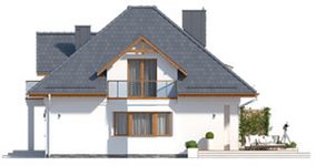 Graficzne opracowanie rzutów poglądowych widocznych na karcie projektu zostało wykonane przez Extradom.pl. Prezentowane przez Extradom.pl wizualizacje wykonane zostały przez autora projektu i należy poczytywać je jedynie za przykład i propozycję wykończenia, wizję architektoniczną autora projektu. Ostateczne wykończenie budynku może nastąpić na wiele sposobów. Szczegółowe rozwiązania zastosowane w oferowanej dokumentacji - w tym również ilość, lokalizacje i wygląd okien, drzwi, kominów - mogą w niewielkim stopniu różnić się od prezentowanej wizualizacji budynku.