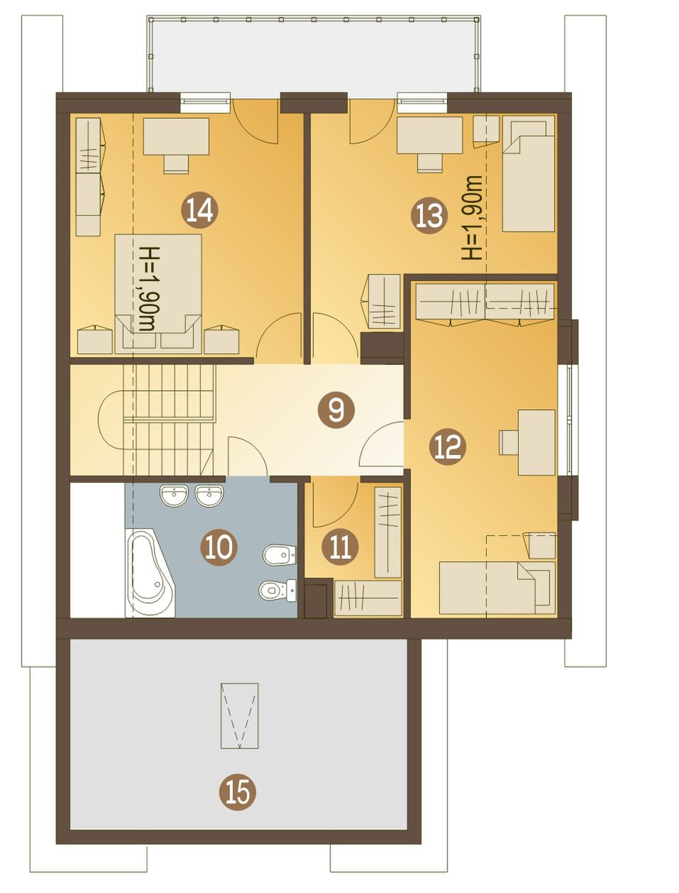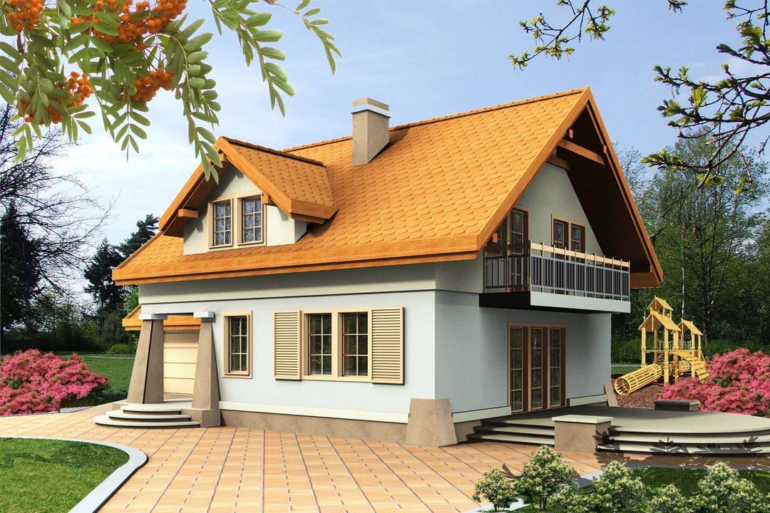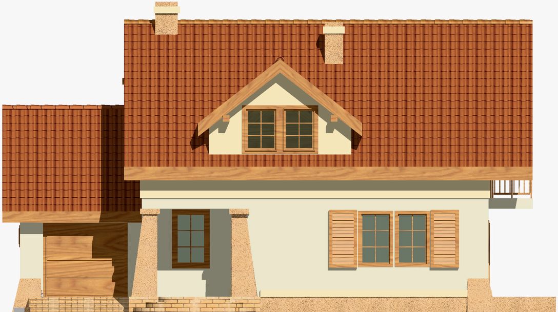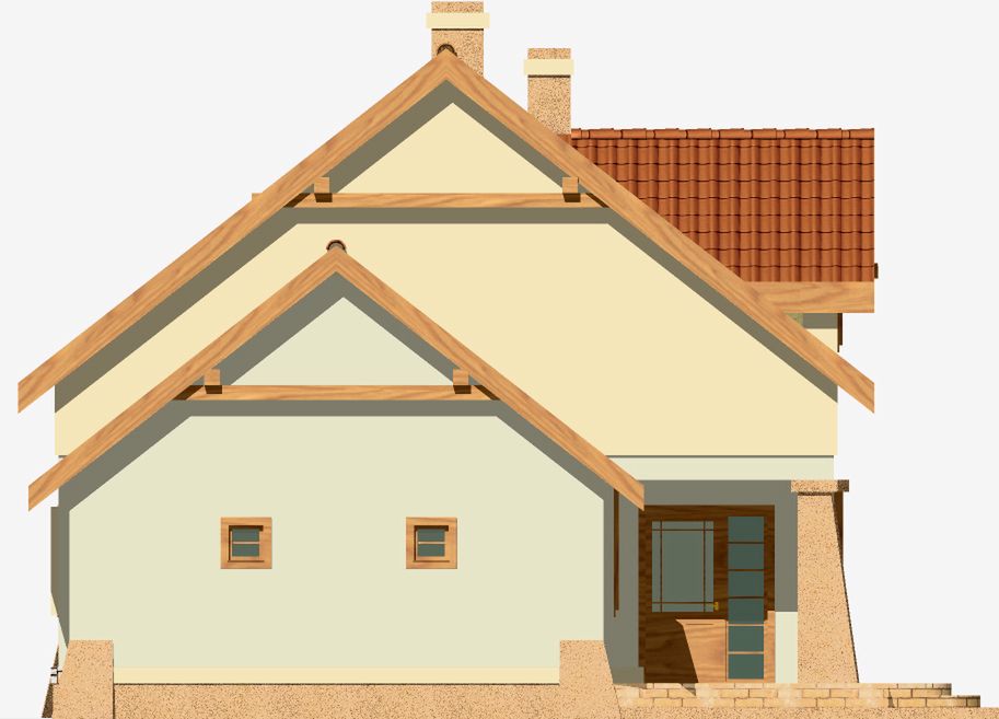 Graficzne opracowanie rzutów poglądowych widocznych na karcie projektu zostało wykonane przez Extradom.pl. Prezentowane przez Extradom.pl wizualizacje wykonane zostały przez autora projektu i należy poczytywać je jedynie za przykład i propozycję wykończenia, wizję architektoniczną autora projektu. Ostateczne wykończenie budynku może nastąpić na wiele sposobów. Szczegółowe rozwiązania zastosowane w oferowanej dokumentacji - w tym również ilość, lokalizacje i wygląd okien, drzwi, kominów - mogą w niewielkim stopniu różnić się od prezentowanej wizualizacji budynku.