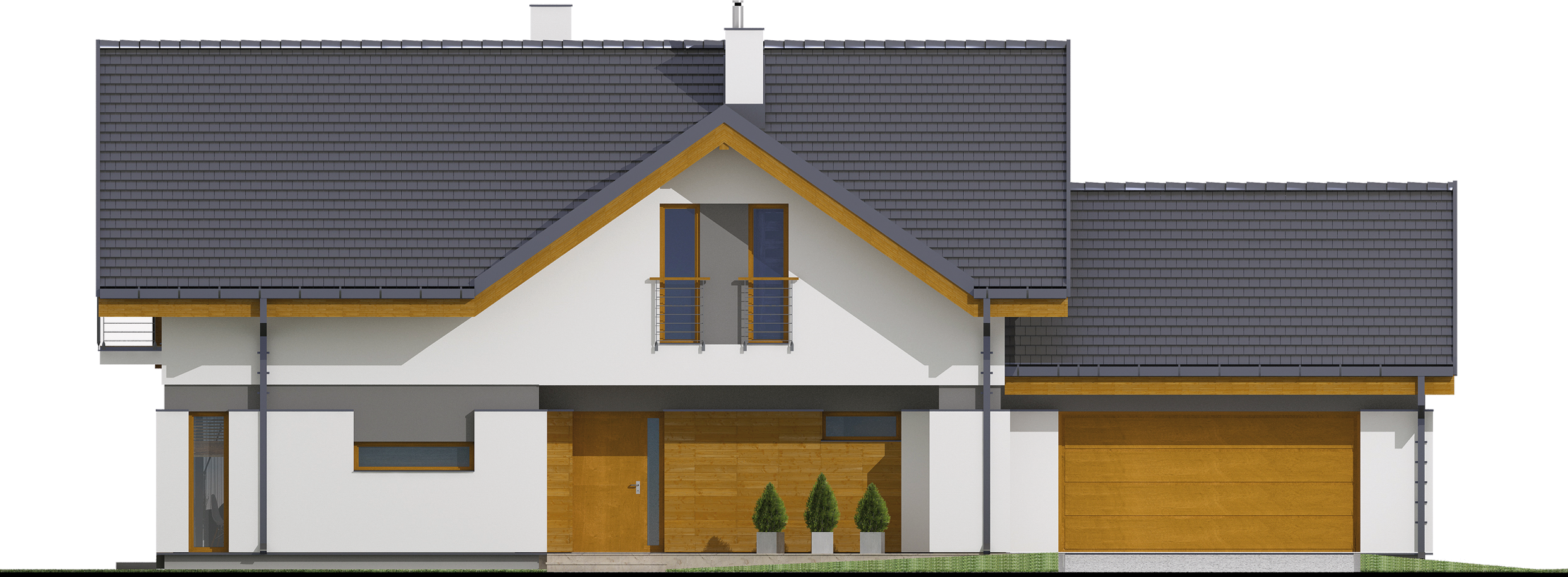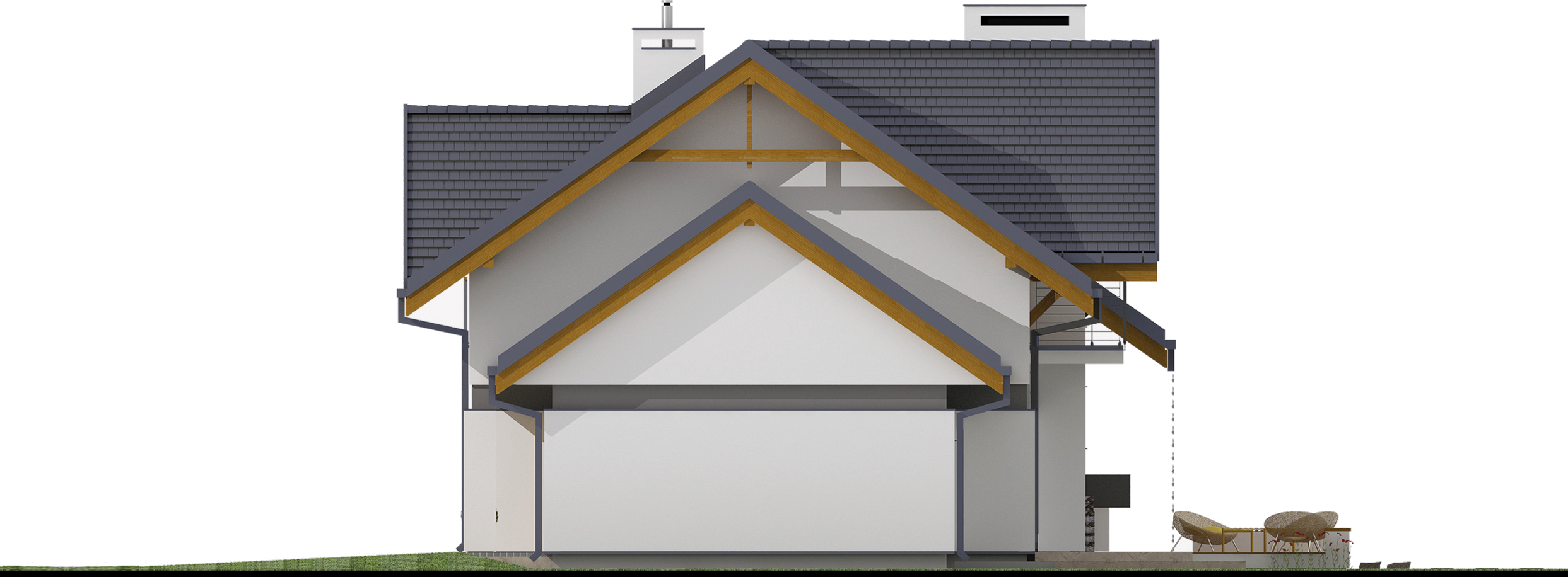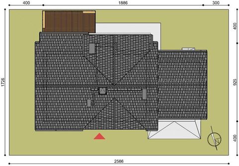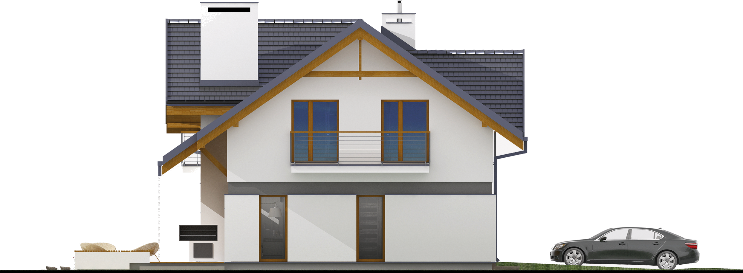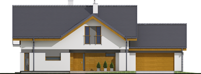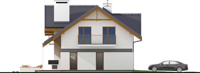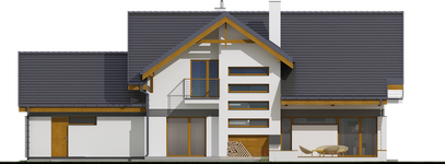 Graficzne opracowanie rzutów poglądowych widocznych na karcie projektu zostało wykonane przez Extradom.pl. Prezentowane przez Extradom.pl wizualizacje wykonane zostały przez autora projektu i należy poczytywać je jedynie za przykład i propozycję wykończenia, wizję architektoniczną autora projektu. Ostateczne wykończenie budynku może nastąpić na wiele sposobów. Szczegółowe rozwiązania zastosowane w oferowanej dokumentacji - w tym również ilość, lokalizacje i wygląd okien, drzwi, kominów - mogą w niewielkim stopniu różnić się od prezentowanej wizualizacji budynku.