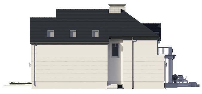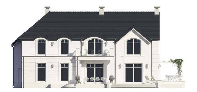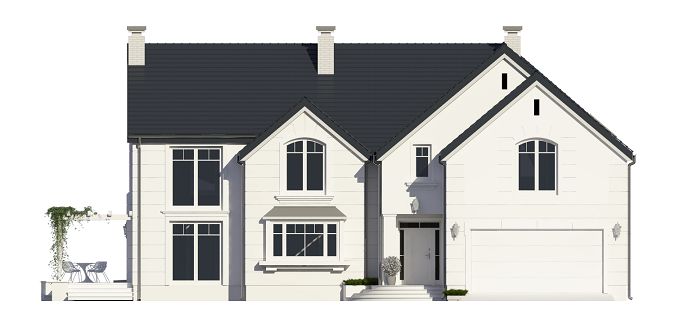 Graficzne opracowanie rzutów poglądowych widocznych na karcie projektu zostało wykonane przez Extradom.pl. Prezentowane przez Extradom.pl wizualizacje wykonane zostały przez autora projektu i należy poczytywać je jedynie za przykład i propozycję wykończenia, wizję architektoniczną autora projektu. Ostateczne wykończenie budynku może nastąpić na wiele sposobów. Szczegółowe rozwiązania zastosowane w oferowanej dokumentacji - w tym również ilość, lokalizacje i wygląd okien, drzwi, kominów - mogą w niewielkim stopniu różnić się od prezentowanej wizualizacji budynku.