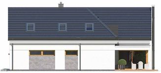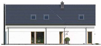 Graficzne opracowanie rzutów poglądowych widocznych na karcie projektu zostało wykonane przez Extradom.pl. Prezentowane przez Extradom.pl wizualizacje wykonane zostały przez autora projektu i należy poczytywać je jedynie za przykład i propozycję wykończenia, wizję architektoniczną autora projektu. Ostateczne wykończenie budynku może nastąpić na wiele sposobów. Szczegółowe rozwiązania zastosowane w oferowanej dokumentacji - w tym również ilość, lokalizacje i wygląd okien, drzwi, kominów - mogą w niewielkim stopniu różnić się od prezentowanej wizualizacji budynku.