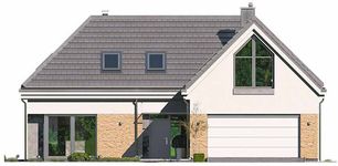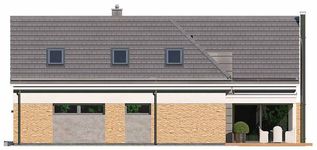 Graficzne opracowanie rzutów poglądowych widocznych na karcie projektu zostało wykonane przez Extradom.pl. Prezentowane przez Extradom.pl wizualizacje wykonane zostały przez autora projektu i należy poczytywać je jedynie za przykład i propozycję wykończenia, wizję architektoniczną autora projektu. Ostateczne wykończenie budynku może nastąpić na wiele sposobów. Szczegółowe rozwiązania zastosowane w oferowanej dokumentacji - w tym również ilość, lokalizacje i wygląd okien, drzwi, kominów - mogą w niewielkim stopniu różnić się od prezentowanej wizualizacji budynku.