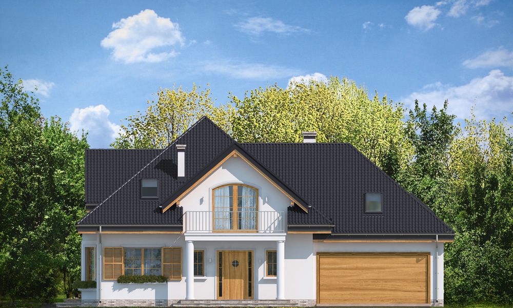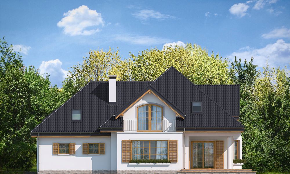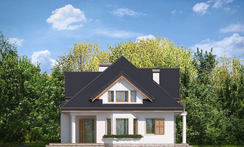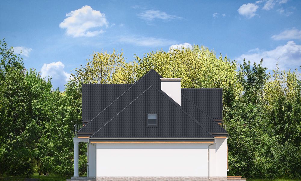 Graficzne opracowanie rzutów poglądowych widocznych na karcie projektu zostało wykonane przez Extradom.pl. Prezentowane przez Extradom.pl wizualizacje wykonane zostały przez autora projektu i należy poczytywać je jedynie za przykład i propozycję wykończenia, wizję architektoniczną autora projektu. Ostateczne wykończenie budynku może nastąpić na wiele sposobów. Szczegółowe rozwiązania zastosowane w oferowanej dokumentacji - w tym również ilość, lokalizacje i wygląd okien, drzwi, kominów - mogą w niewielkim stopniu różnić się od prezentowanej wizualizacji budynku.