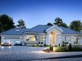 Graficzne opracowanie rzutów poglądowych widocznych na karcie projektu zostało wykonane przez Extradom.pl. Prezentowane przez Extradom.pl wizualizacje wykonane zostały przez autora projektu i należy poczytywać je jedynie za przykład i propozycję wykończenia, wizję architektoniczną autora projektu. Ostateczne wykończenie budynku może nastąpić na wiele sposobów. Szczegółowe rozwiązania zastosowane w oferowanej dokumentacji - w tym również ilość, lokalizacje i wygląd okien, drzwi, kominów - mogą w niewielkim stopniu różnić się od prezentowanej wizualizacji budynku.