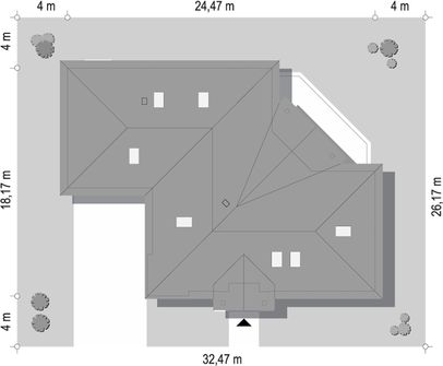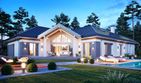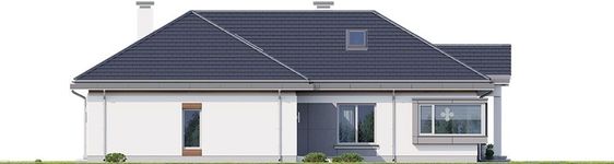 Graficzne opracowanie rzutów poglądowych widocznych na karcie projektu zostało wykonane przez Extradom.pl. Prezentowane przez Extradom.pl wizualizacje wykonane zostały przez autora projektu i należy poczytywać je jedynie za przykład i propozycję wykończenia, wizję architektoniczną autora projektu. Ostateczne wykończenie budynku może nastąpić na wiele sposobów. Szczegółowe rozwiązania zastosowane w oferowanej dokumentacji - w tym również ilość, lokalizacje i wygląd okien, drzwi, kominów - mogą w niewielkim stopniu różnić się od prezentowanej wizualizacji budynku.