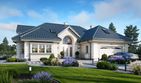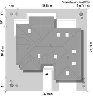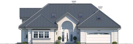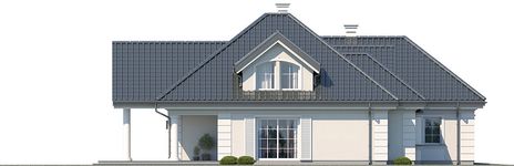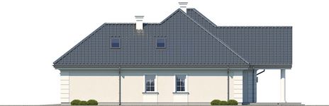 Graficzne opracowanie rzutów poglądowych widocznych na karcie projektu zostało wykonane przez Extradom.pl. Prezentowane przez Extradom.pl wizualizacje wykonane zostały przez autora projektu i należy poczytywać je jedynie za przykład i propozycję wykończenia, wizję architektoniczną autora projektu. Ostateczne wykończenie budynku może nastąpić na wiele sposobów. Szczegółowe rozwiązania zastosowane w oferowanej dokumentacji - w tym również ilość, lokalizacje i wygląd okien, drzwi, kominów - mogą w niewielkim stopniu różnić się od prezentowanej wizualizacji budynku.