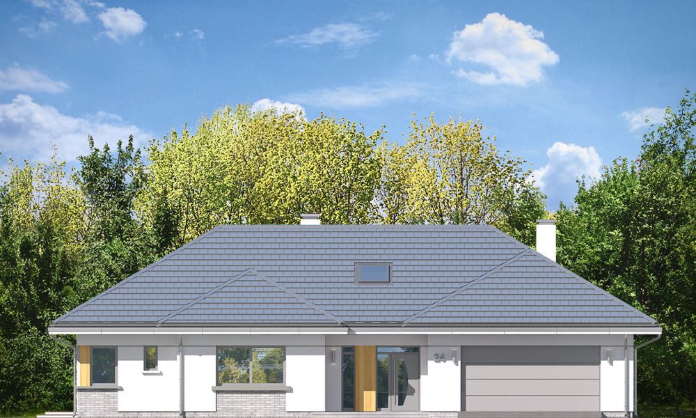 Willa Parterowa to projekt przestronnego domu parterowego w tradycyjnym stylu, stworzony z myślą o komforcie cztero- lub pięcioosobowej rodziny. Oferuje on rozłożysty, parterowy układ funkcjonalny z wyraźnym podziałem na strefy, wysoki salon z antresolą oraz wygodny, dwustanowiskowy garaż wkomponowany w bryłę budynku.