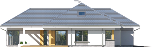 Graficzne opracowanie rzutów poglądowych widocznych na karcie projektu zostało wykonane przez Extradom.pl. Prezentowane przez Extradom.pl wizualizacje wykonane zostały przez autora projektu i należy poczytywać je jedynie za przykład i propozycję wykończenia, wizję architektoniczną autora projektu. Ostateczne wykończenie budynku może nastąpić na wiele sposobów. Szczegółowe rozwiązania zastosowane w oferowanej dokumentacji - w tym również ilość, lokalizacje i wygląd okien, drzwi, kominów - mogą w niewielkim stopniu różnić się od prezentowanej wizualizacji budynku.