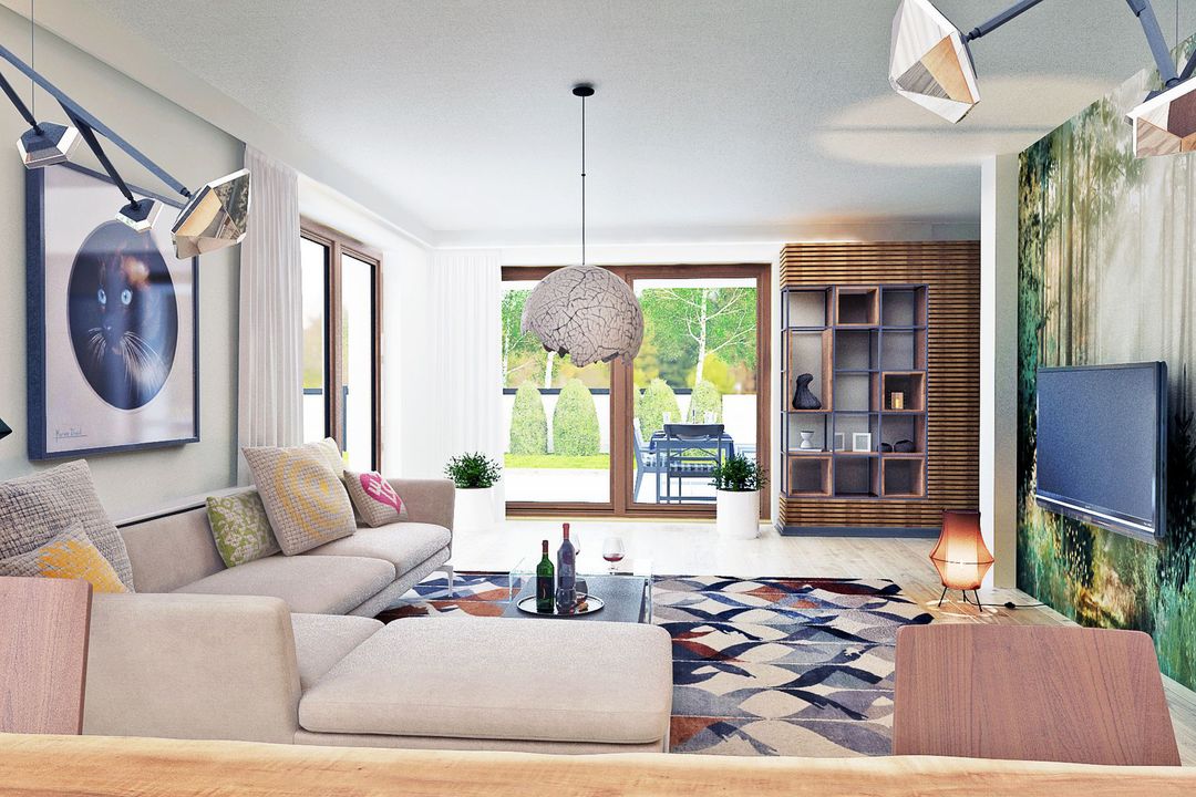 Graficzne opracowanie rzutów poglądowych widocznych na karcie projektu zostało wykonane przez Extradom.pl. Prezentowane przez Extradom.pl wizualizacje wykonane zostały przez autora projektu i należy poczytywać je jedynie za przykład i propozycję wykończenia, wizję architektoniczną autora projektu. Ostateczne wykończenie budynku może nastąpić na wiele sposobów. Szczegółowe rozwiązania zastosowane w oferowanej dokumentacji - w tym również ilość, lokalizacje i wygląd okien, drzwi, kominów - mogą w niewielkim stopniu różnić się od prezentowanej wizualizacji budynku.