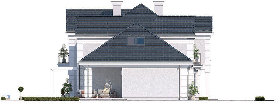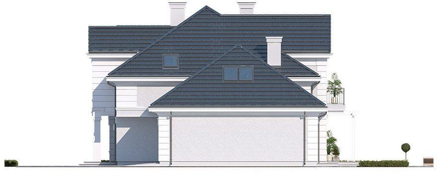 Graficzne opracowanie rzutów poglądowych widocznych na karcie projektu zostało wykonane przez Extradom.pl. Prezentowane przez Extradom.pl wizualizacje wykonane zostały przez autora projektu i należy poczytywać je jedynie za przykład i propozycję wykończenia, wizję architektoniczną autora projektu. Ostateczne wykończenie budynku może nastąpić na wiele sposobów. Szczegółowe rozwiązania zastosowane w oferowanej dokumentacji - w tym również ilość, lokalizacje i wygląd okien, drzwi, kominów - mogą w niewielkim stopniu różnić się od prezentowanej wizualizacji budynku.