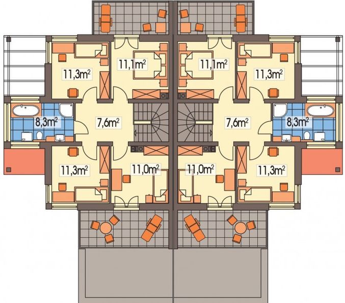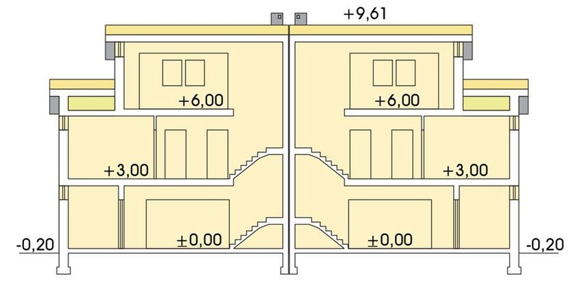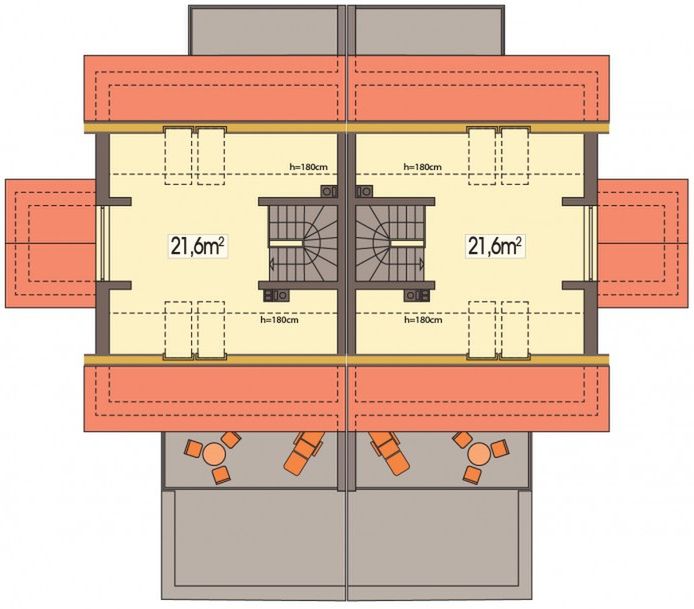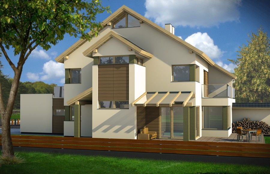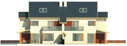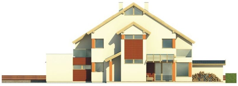 Graficzne opracowanie rzutów poglądowych widocznych na karcie projektu zostało wykonane przez Extradom.pl. Prezentowane przez Extradom.pl wizualizacje wykonane zostały przez autora projektu i należy poczytywać je jedynie za przykład i propozycję wykończenia, wizję architektoniczną autora projektu. Ostateczne wykończenie budynku może nastąpić na wiele sposobów. Szczegółowe rozwiązania zastosowane w oferowanej dokumentacji - w tym również ilość, lokalizacje i wygląd okien, drzwi, kominów - mogą w niewielkim stopniu różnić się od prezentowanej wizualizacji budynku.