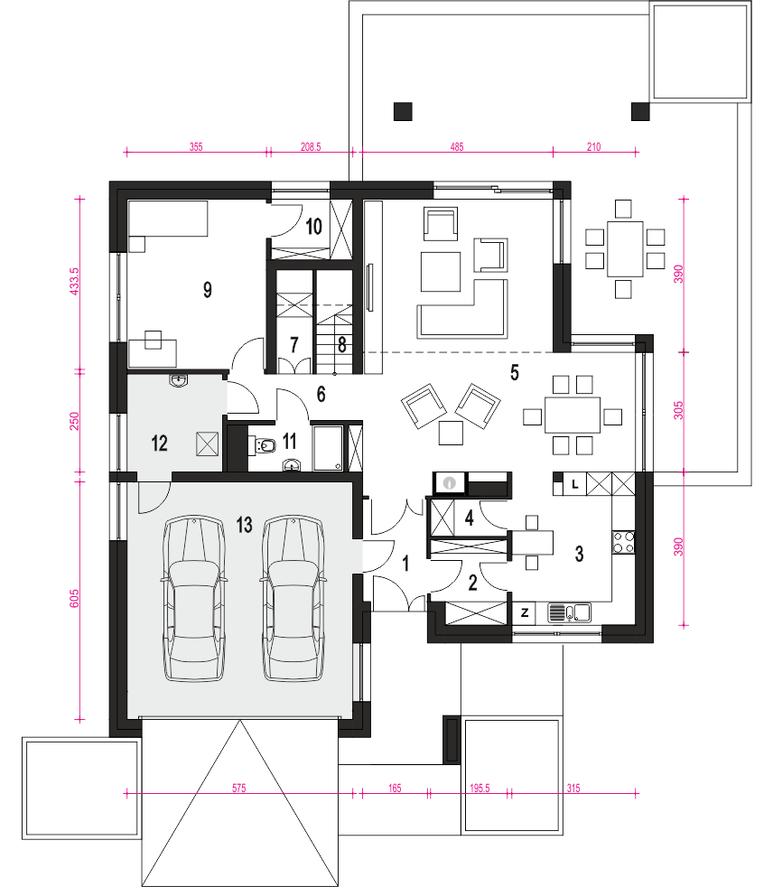 Willa sosnowa z garażem 2-st. [A] WRF2054