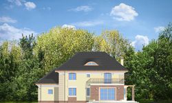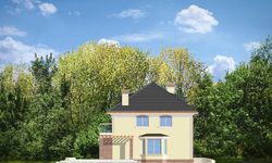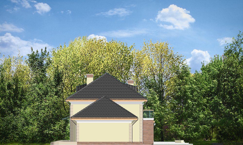 Graficzne opracowanie rzutów poglądowych widocznych na karcie projektu zostało wykonane przez Extradom.pl. Prezentowane przez Extradom.pl wizualizacje wykonane zostały przez autora projektu i należy poczytywać je jedynie za przykład i propozycję wykończenia, wizję architektoniczną autora projektu. Ostateczne wykończenie budynku może nastąpić na wiele sposobów. Szczegółowe rozwiązania zastosowane w oferowanej dokumentacji - w tym również ilość, lokalizacje i wygląd okien, drzwi, kominów - mogą w niewielkim stopniu różnić się od prezentowanej wizualizacji budynku.