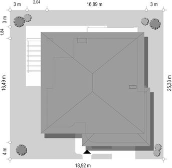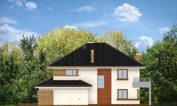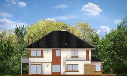 Graficzne opracowanie rzutów poglądowych widocznych na karcie projektu zostało wykonane przez Extradom.pl. Prezentowane przez Extradom.pl wizualizacje wykonane zostały przez autora projektu i należy poczytywać je jedynie za przykład i propozycję wykończenia, wizję architektoniczną autora projektu. Ostateczne wykończenie budynku może nastąpić na wiele sposobów. Szczegółowe rozwiązania zastosowane w oferowanej dokumentacji - w tym również ilość, lokalizacje i wygląd okien, drzwi, kominów - mogą w niewielkim stopniu różnić się od prezentowanej wizualizacji budynku.