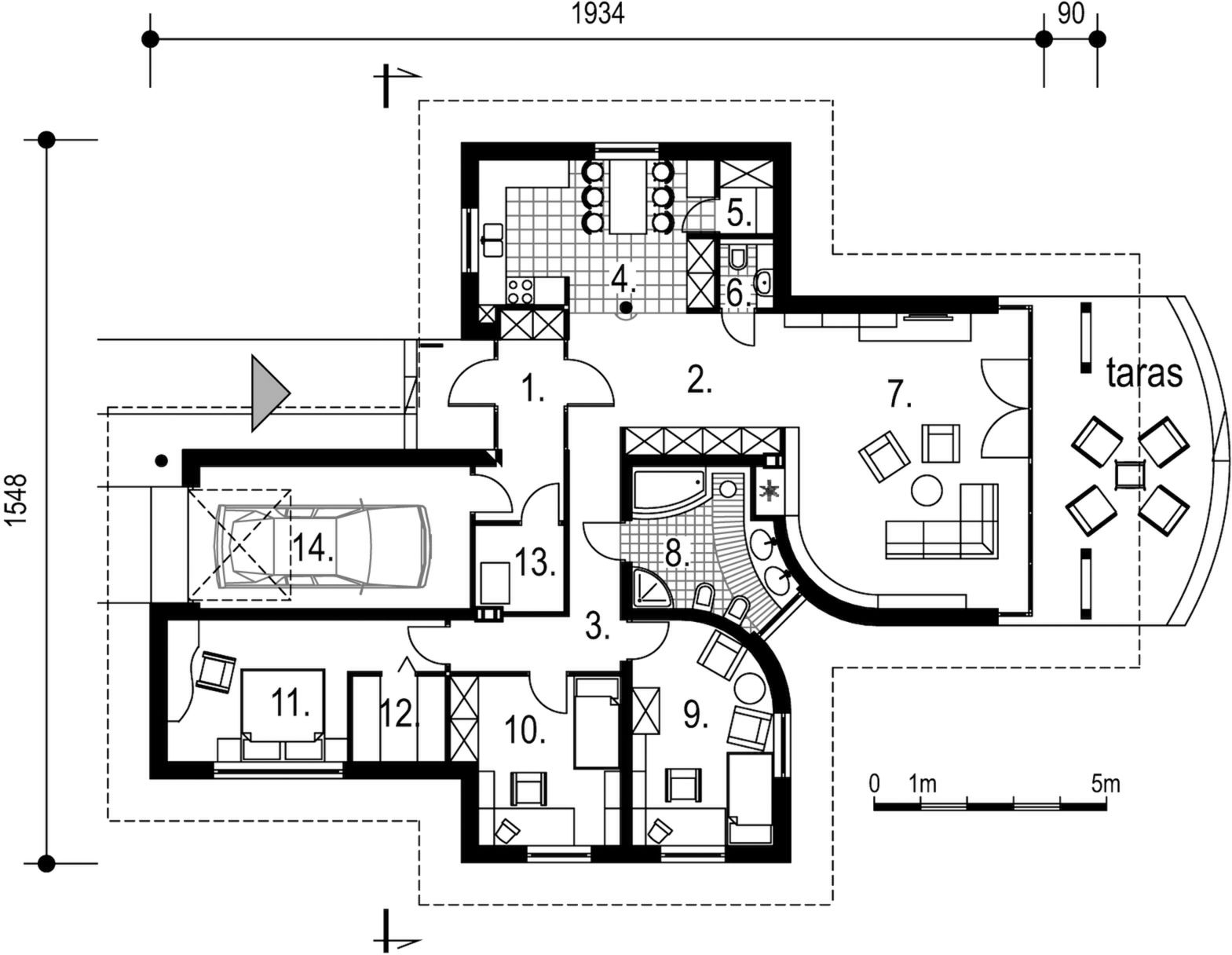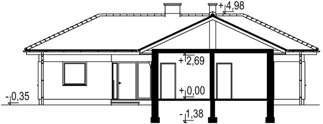 Ściany zewnętrzne dwuwarstwowe: cegła SILKA + wełna mineralna + tynk. Ściany wewnętrzne: cegła SILKA i/lub płyty na ruszcie stalowym, wygłuszone wełną mineralną. Strop: drewniany. Więźba dachowa: tradycyjna drewniana. Poszycie dachu: dachówka cementowa. Stolarka: drewniana lub PCV. Instalacja centralnego ogrzewania: kocioł dwufunkcyjny + grzejniki.