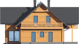 Wysokość ścianki kolankowej: 1 m. Ilość drewna na więźbę: 17.49 m³. Strop: drewniany. Pokrycie dachu: dachówka gontopodobna Gerard Corona. Ściany zewnętrzne: płazy drewniane + wełna mineralna + deska. Ściany wewnętrzne: płazy drewniane. Typ ogrzewania: kocioł gazowy. Instalacje dodatkowe: instalacja solarna, pompa ciepła. Inne: okna połaciowe Velux.
