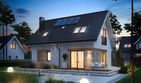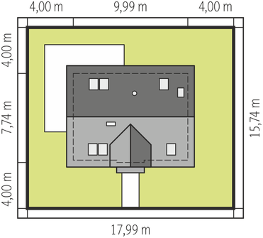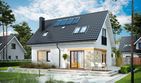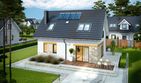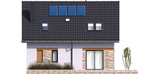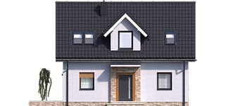 Graficzne opracowanie rzutów poglądowych widocznych na karcie projektu zostało wykonane przez Extradom.pl. Prezentowane przez Extradom.pl wizualizacje wykonane zostały przez autora projektu i należy poczytywać je jedynie za przykład i propozycję wykończenia, wizję architektoniczną autora projektu. Ostateczne wykończenie budynku może nastąpić na wiele sposobów. Szczegółowe rozwiązania zastosowane w oferowanej dokumentacji - w tym również ilość, lokalizacje i wygląd okien, drzwi, kominów - mogą w niewielkim stopniu różnić się od prezentowanej wizualizacji budynku.