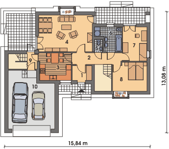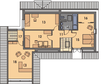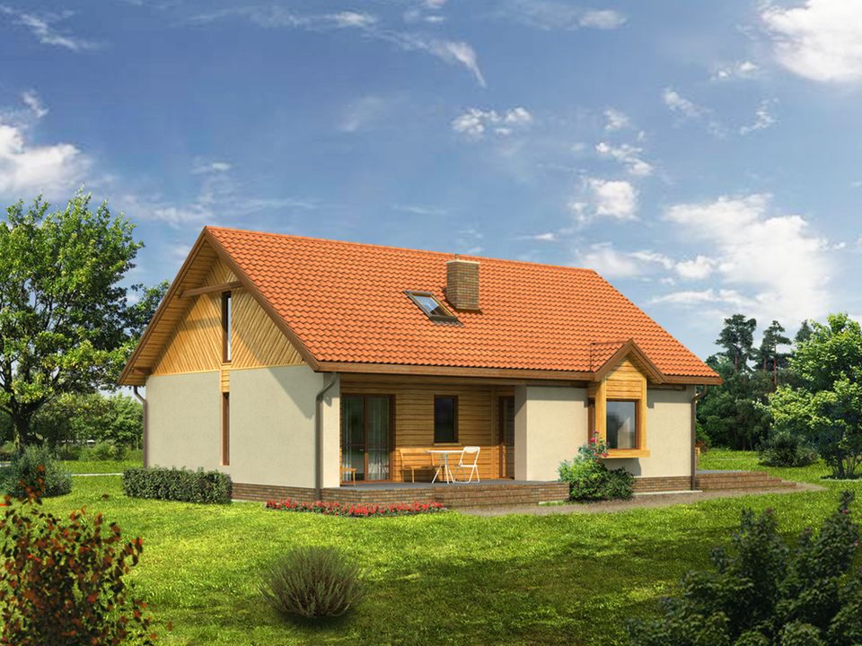 Graficzne opracowanie rzutów poglądowych widocznych na karcie projektu zostało wykonane przez Extradom.pl. Prezentowane przez Extradom.pl wizualizacje wykonane zostały przez autora projektu i należy poczytywać je jedynie za przykład i propozycję wykończenia, wizję architektoniczną autora projektu. Ostateczne wykończenie budynku może nastąpić na wiele sposobów. Szczegółowe rozwiązania zastosowane w oferowanej dokumentacji - w tym również ilość, lokalizacje i wygląd okien, drzwi, kominów - mogą w niewielkim stopniu różnić się od prezentowanej wizualizacji budynku.