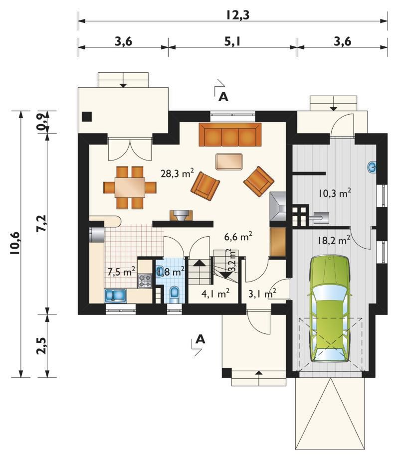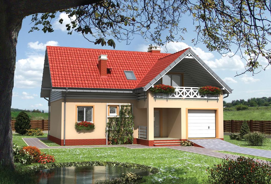 Graficzne opracowanie rzutów poglądowych widocznych na karcie projektu zostało wykonane przez Extradom.pl. Prezentowane przez Extradom.pl wizualizacje wykonane zostały przez autora projektu i należy poczytywać je jedynie za przykład i propozycję wykończenia, wizję architektoniczną autora projektu. Ostateczne wykończenie budynku może nastąpić na wiele sposobów. Szczegółowe rozwiązania zastosowane w oferowanej dokumentacji - w tym również ilość, lokalizacje i wygląd okien, drzwi, kominów - mogą w niewielkim stopniu różnić się od prezentowanej wizualizacji budynku.