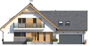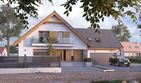Graficzne opracowanie rzutów poglądowych widocznych na karcie projektu zostało wykonane przez Extradom.pl. Prezentowane przez Extradom.pl wizualizacje wykonane zostały przez autora projektu i należy poczytywać je jedynie za przykład i propozycję wykończenia, wizję architektoniczną autora projektu. Ostateczne wykończenie budynku może nastąpić na wiele sposobów. Szczegółowe rozwiązania zastosowane w oferowanej dokumentacji - w tym również ilość, lokalizacje i wygląd okien, drzwi, kominów - mogą w niewielkim stopniu różnić się od prezentowanej wizualizacji budynku.