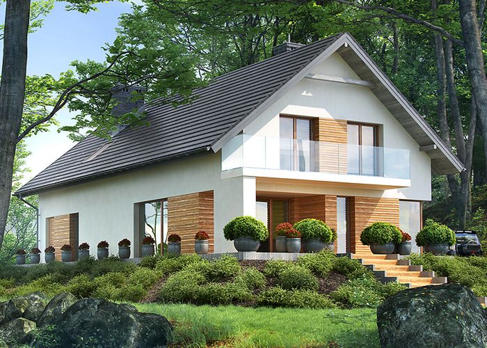 Zdecydowaliśmy się na projekt Woodland BBE1028 przede wszystkim ze względu na jego konstrukcję. Od początku byliśmy zainteresowani budynkiem o nieskomplikowanej bryle oraz dwuspadowym dachu i to właśnie te cechy miały największe znaczenie przy naszym wyborze. Oprócz tego, dom ukazany na wizualizacji bardzo przypadł nam do gustu - mimo prostej formy, atrakcyjnie się prezentuje na co wpływ ma m.in. zaproponowana przez architekta ciekawa elewacja w skandynawskim stylu. Układ pomieszczeń miał dla nas drugorzędne znaczenie, ponieważ wiedzieliśmy, że będziemy mogli wprowadzić w nim satysfakcjonujące nas zmiany.Nasza realizacja odbyła się bez żadnych problemów. Dobieraliśmy fachowców w oparciu o polecenie zaufanych osób i do wybudowania naszego domu zatrudniliśmy doświadczoną, profesjonalną firmę. Wykonawcy ze wszystkim poradzili sobie bardzo sprawnie. Na plac budowy weszli w kwietniu 2014 r., a już po dwóch latach, w kwietniu 2016 r. wprowadziliśmy się do nowego, w pełni wykończonego domu. Ściany zostały wymurowane z ceramicznych pustaków Porotherm marki Wienerberger. Strop tradycyjnie wylaliśmy betonem, zaś dach pokryliśmy dachówką ceramiczną Meyer-Holsen.Architekt całkiem poprawnie oszacował kosztorys - cena naszej inwestycji nie odbiegała drastycznie od podanej kwoty, więc uważam że można się nią sugerować. Jednocześnie myślę, że zawsze lepiej jednak zakładać wyższe koszta, gdyż wpływ na ostateczną cenę ma wiele różnych czynników, których czasem nie można przewidzieć. Sporo zależy od rejonu Polski, w którym Inwestor zdecyduje się budować oraz aktualnych cen materiałów na rynku, które często się zmieniają np. fachowiec od razu uprzedził nas, że w okresie naszej realizacji ceny drewna poszły w górę, więc wszystkie drewniane elementy były dosyć kosztowne. Duże znaczenie mają również warunki terenu. Nasza działka położona jest na podmokłym gruncie, dlatego też musieliśmy wykonać hydroizolacje oraz dodatkowe odwodnienie fundamentów i tym samym zamontować pięć studzienek, co łącznie wyniosło ok. 10 tys. zł. Część nadprogramowych kosztów wynikła również z wprowadzonych zmian. Postanowiliśmy dobudować w bryle domu jeszcze jeden garaż, a powierzchnię nad nim przeznaczyliśmy na zrobienie tarasu, którego izolacja i zabezpieczenie przed zaciekami wiązało się z dużymi kosztami. Muszę jednak przyznać, iż absolutnie tego nie żałuję - dodatkowy, nowoczesny taras sprawił że budynek nabrał wyjątkowego uroku i prezentuje się jeszcze lepiej.Do projektu Woodland BBE1028 nanieśliśmy również kilka innych modyfikacji. Nieco podnieśliśmy wysokość parteru oraz zrezygnowaliśmy z bocznego okna w kuchni. Brak tego elementu spowodował, iż zyskaliśmy w niej więcej miejsca na powieszenie szafek. Na chwilę obecną myślę, że dobrym pomysłem byłoby lekkie odsunięcie wyspy od pozostałej zabudowy kuchennej, co dałoby większą swobodę jej użytkowania. Architekt uwzględnił na poddaszu trzy sypialnie i tylko jedną łazienkę, co nie wydało nam się do końca trafione. Wejście do pierwotnie przewidzianej łazienki zrobiliśmy od strony dużej, małżeńskiej sypialni przekształcając ją tym samym w prywatną. Drugą łazienkę wykonaliśmy w miejscu pralni, z kolei pralnię wygospodarowaliśmy pod skosem naprzeciwko - bez problemu zmieściła się tam zarówno pralka, jak i suszarka. Jestem bardzo zadowolona z tego rozwiązania i szczerze polecam je innym Inwestorom. Innych zmian nie wprowadzaliśmy, aczkolwiek na chwilę obecną nieco żałuję, iż nie zamieniłam długiego okna w gabinecie na dole na tradycyjne przeszklenie z parapetem. Uważam, że naprawdę warto to rozważyć, gdyż wtedy pokój stanie się bardziej ustawny. Teraz zastanowiłabym się również nad innym rozwiązaniem dotyczącym frontowego balkonu, którego izolacja nie do końca się sprawdza. Myślę, że można z niego albo zrezygnować, albo zrobić nad nim zadaszenie w lekkiej konstrukcji np. szklanej.W nowym domu mieszkam wraz z mężem oraz naszym dzieckiem, a powierzchnia przewidziana w projekcie Woodland BBE1028 jest dla nas w pełni komfortowa. Sypialni jest dosyć sporo, więc gdy nasza rodzina powiększy się o jeszcze jedno dziecko, wszystkim nam będzie wygodnie. Trzeba przyznać, że górne pokoje są naprawdę duże, co bardzo mnie cieszy. Mimo, iż jest to poddasze, pomieszczenia są ustawne i przestronne. Skosy nie są żadnym problemem, a mebli mieści się naprawdę sporo. Jedyne zastrzeżenia mam do wymiarów kuchni, ale za to obszerny salon w pełni mnie satysfakcjonuje. Pozdrawiam.
