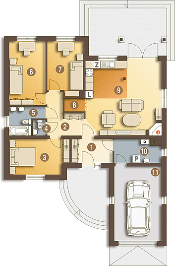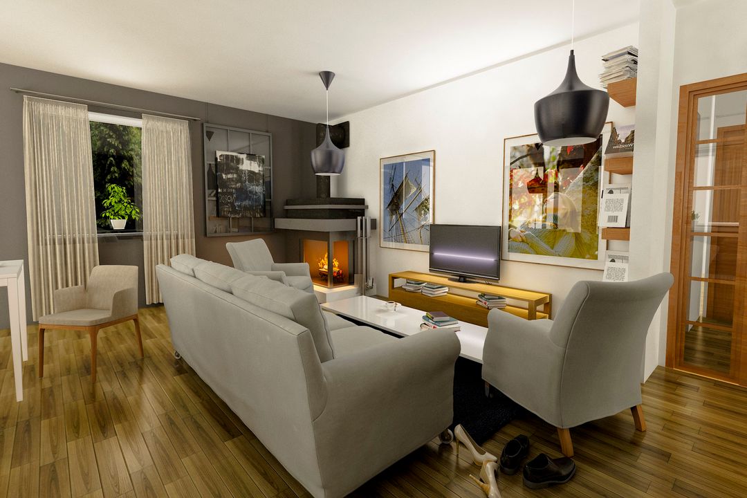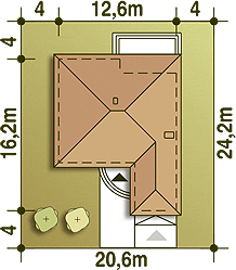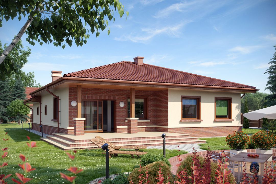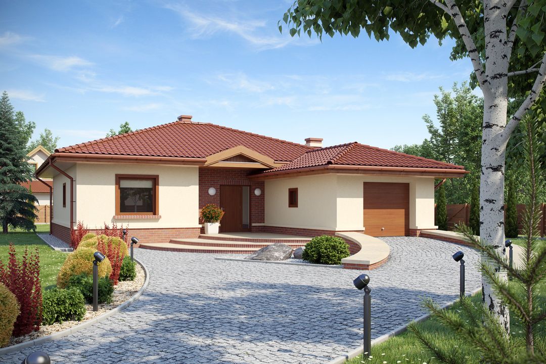 Graficzne opracowanie rzutów poglądowych widocznych na karcie projektu zostało wykonane przez Extradom.pl. Prezentowane przez Extradom.pl wizualizacje wykonane zostały przez autora projektu i należy poczytywać je jedynie za przykład i propozycję wykończenia, wizję architektoniczną autora projektu. Ostateczne wykończenie budynku może nastąpić na wiele sposobów. Szczegółowe rozwiązania zastosowane w oferowanej dokumentacji - w tym również ilość, lokalizacje i wygląd okien, drzwi, kominów - mogą w niewielkim stopniu różnić się od prezentowanej wizualizacji budynku.