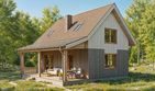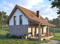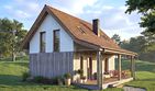 Graficzne opracowanie rzutów poglądowych widocznych na karcie projektu zostało wykonane przez Extradom.pl. Prezentowane przez Extradom.pl wizualizacje wykonane zostały przez autora projektu i należy poczytywać je jedynie za przykład i propozycję wykończenia, wizję architektoniczną autora projektu. Ostateczne wykończenie budynku może nastąpić na wiele sposobów. Szczegółowe rozwiązania zastosowane w oferowanej dokumentacji - w tym również ilość, lokalizacje i wygląd okien, drzwi, kominów - mogą w niewielkim stopniu różnić się od prezentowanej wizualizacji budynku.