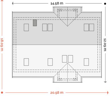 Graficzne opracowanie rzutów poglądowych widocznych na karcie projektu zostało wykonane przez Extradom.pl. Prezentowane przez Extradom.pl wizualizacje wykonane zostały przez autora projektu i należy poczytywać je jedynie za przykład i propozycję wykończenia, wizję architektoniczną autora projektu. Ostateczne wykończenie budynku może nastąpić na wiele sposobów. Szczegółowe rozwiązania zastosowane w oferowanej dokumentacji - w tym również ilość, lokalizacje i wygląd okien, drzwi, kominów - mogą w niewielkim stopniu różnić się od prezentowanej wizualizacji budynku.