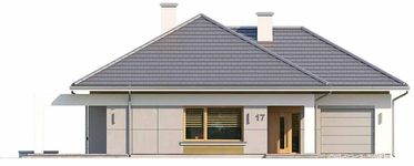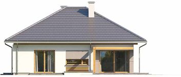 Graficzne opracowanie rzutów poglądowych widocznych na karcie projektu zostało wykonane przez Extradom.pl. Prezentowane przez Extradom.pl wizualizacje wykonane zostały przez autora projektu i należy poczytywać je jedynie za przykład i propozycję wykończenia, wizję architektoniczną autora projektu. Ostateczne wykończenie budynku może nastąpić na wiele sposobów. Szczegółowe rozwiązania zastosowane w oferowanej dokumentacji - w tym również ilość, lokalizacje i wygląd okien, drzwi, kominów - mogą w niewielkim stopniu różnić się od prezentowanej wizualizacji budynku.
