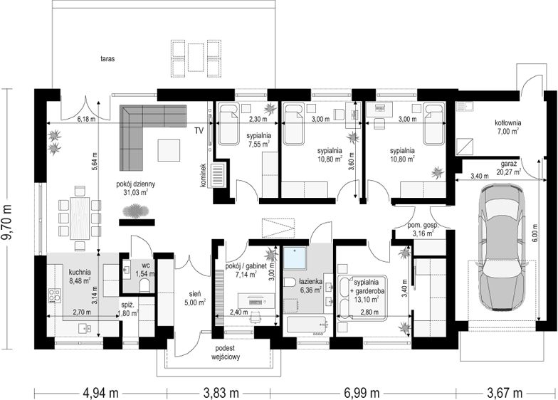 PROJEKT Z BUDOWĄ Istnieje możliwość zaadaptowania tego projektu do technologii prefabrykowanej/modułowej i budowy nawet w 6 miesięcy ze stałym kosztem budowy