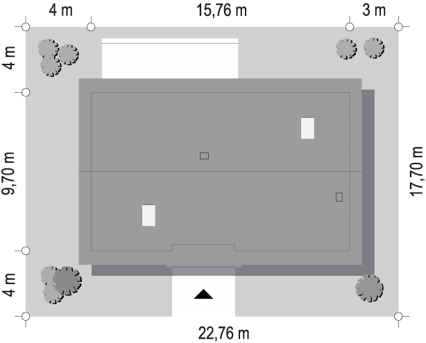 Fundamenty: :betonowe ławy i ściany fundamentowe z bloczków betonowych. Ściany zewnętrzne: :ściany murowane - bloczki gazobeton + styropian. Strop: :monolityczny betonowy. Elewacje: :tynk cienkowarstwowy. Pokrycie dachu: :dachówka. Nachylenie dachu: 30 stopni.