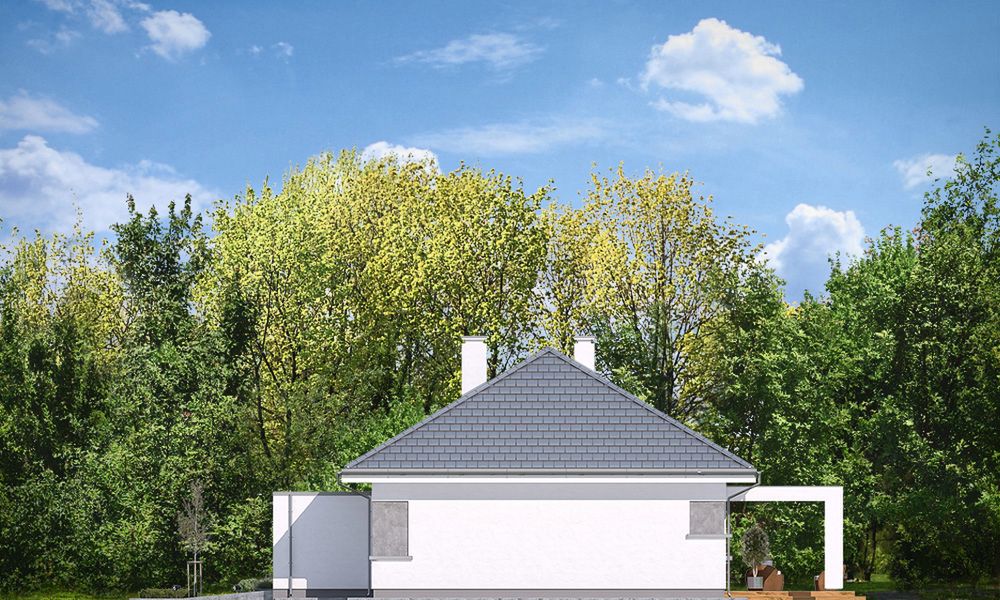Graficzne opracowanie rzutów poglądowych widocznych na karcie projektu zostało wykonane przez Extradom.pl. Prezentowane przez Extradom.pl wizualizacje wykonane zostały przez autora projektu i należy poczytywać je jedynie za przykład i propozycję wykończenia, wizję architektoniczną autora projektu. Ostateczne wykończenie budynku może nastąpić na wiele sposobów. Szczegółowe rozwiązania zastosowane w oferowanej dokumentacji - w tym również ilość, lokalizacje i wygląd okien, drzwi, kominów - mogą w niewielkim stopniu różnić się od prezentowanej wizualizacji budynku.