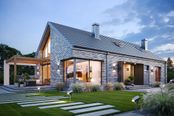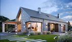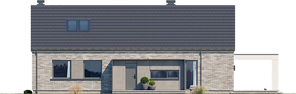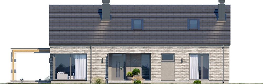 Graficzne opracowanie rzutów poglądowych widocznych na karcie projektu zostało wykonane przez Extradom.pl. Prezentowane przez Extradom.pl wizualizacje wykonane zostały przez autora projektu i należy poczytywać je jedynie za przykład i propozycję wykończenia, wizję architektoniczną autora projektu. Ostateczne wykończenie budynku może nastąpić na wiele sposobów. Szczegółowe rozwiązania zastosowane w oferowanej dokumentacji - w tym również ilość, lokalizacje i wygląd okien, drzwi, kominów - mogą w niewielkim stopniu różnić się od prezentowanej wizualizacji budynku.
