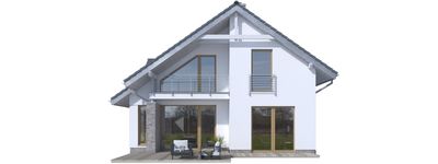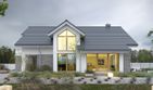 Graficzne opracowanie rzutów poglądowych widocznych na karcie projektu zostało wykonane przez Extradom.pl. Prezentowane przez Extradom.pl wizualizacje wykonane zostały przez autora projektu i należy poczytywać je jedynie za przykład i propozycję wykończenia, wizję architektoniczną autora projektu. Ostateczne wykończenie budynku może nastąpić na wiele sposobów. Szczegółowe rozwiązania zastosowane w oferowanej dokumentacji - w tym również ilość, lokalizacje i wygląd okien, drzwi, kominów - mogą w niewielkim stopniu różnić się od prezentowanej wizualizacji budynku.