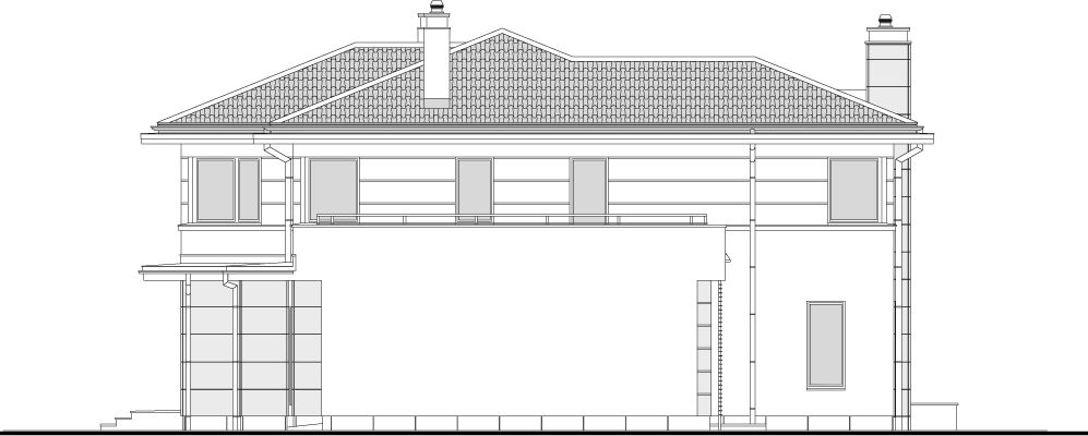 Fundamenty: tradycyjne - ławy i stopy żelbetowe. Ściany: pustak ceramiczny + styropian - na etapie adaptacji projektu istnieje możliwość zamiany pustaka ceramicznego na inny materiał o podobnych parametrach wytrzymałosciowych, np. na bloczek silikatowy. Elewacja: tynk, wielkoformatowe płyty kamienne - wielkoformatowe płyty kamienne wykorzystane jako materiał dekoracyjny można zamienić na etapie adaptacji projektu na inny, np. na płytkę klinkierową. Stropy: żelbetowe wylewane - na etapie adaptacji projektu istnieje możliwość zmiany technologii stropu na gęstożebrowy lub prefabrykowany. Schody: konstrukcji lekkiej - konstrukcja oraz materiały wykończeniowe schodów przewidziane do indywidualnej aranżacji. Dach: dachówka ceramiczna lub cementowa - konstrukcja więźby przewidziana pod pokrycie ciężkie dla I strefy wiatrowej i II strefy śniegowej.