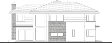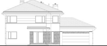 Konstrukcja: zgodna z normami EUROKOD. Fundamenty: tradycyjne ławy i stopy żelbetowe. Ściany: bloczek silikatowy + styropian na etapie adaptacji projektu istnieje możliwość zamiany bloczka silikatowego na inny materiał o podobnych parametrach wytrzymałosciowych, np. na pustak ceramiczny. Elewacja: tynk, wielkoformatowe płyty kamienne wielkoformatowe płyty kamienne wykorzystane jako materiał dekoracyjny można zamienić na etapie adaptacji projektu na inny, np. na płytkę klinkierową. Stropy: żelbetowe wylewane na etapie adaptacji projektu istnieje możliwość zmiany technologii stropu na gęstożebrowy lub prefabrykowany. Schody: konstrukcji lekkiej konstrukcja oraz materiały wykończeniowe schodów przewidziane do indywidualnej aranżacji. Możesz skorzystać z usług naszego Partnera. Formularz ofertowy dostępny w zakładce „kosztorys”. Dach: dachówka ceramiczna lub cementowa konstrukcja więźby przewidziana pod pokrycie ciężkie dla I strefy wiatrowej i II strefy śniegowej.