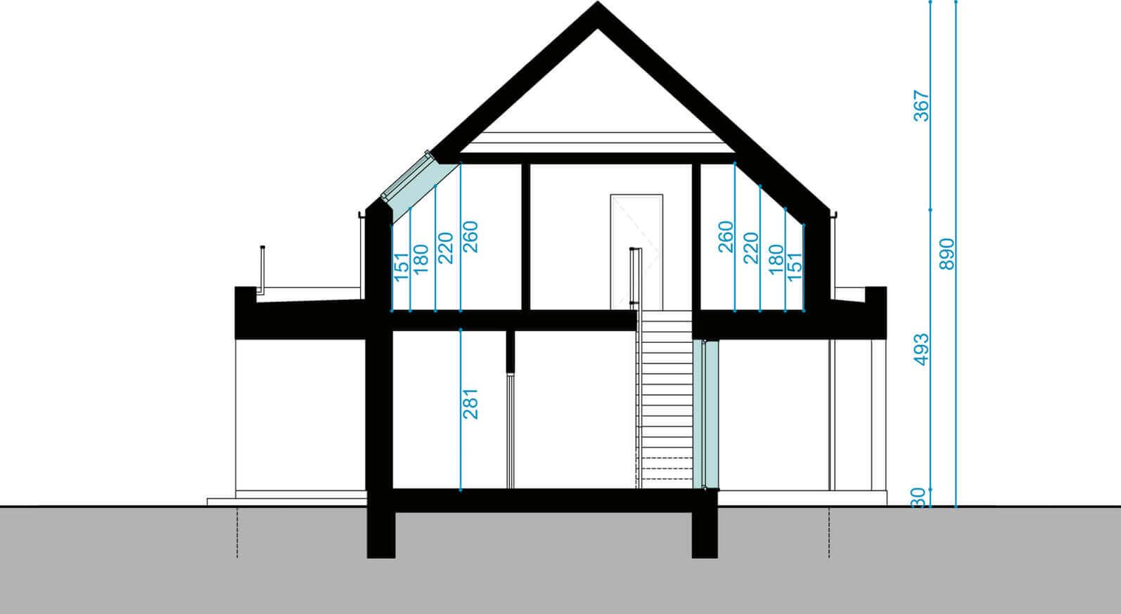 Fundamenty: ławy żelbetowe. Ściany konstrukcja: pustak ceramiczny Porotherm. Ściany elewacja: tynk, okładzina klinkierowa. Stropy: żelbetowe monolityczne. Dach konstrukcja: więźba drewniana płatwiowo-kleszczowa. Dach pokrycie: blacha stalowa cynkowana powlekana na rąbek stojący. Schody: stalowo - drewniane. Ogrzewanie kocioł: kocioł gazowy dwufunkcyjny. Ogrzewanie grzejniki: grzejniki ścienne + ogrzewanie podłogowe.
