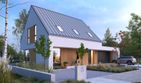 Graficzne opracowanie rzutów poglądowych widocznych na karcie projektu zostało wykonane przez Extradom.pl. Prezentowane przez Extradom.pl wizualizacje wykonane zostały przez autora projektu i należy poczytywać je jedynie za przykład i propozycję wykończenia, wizję architektoniczną autora projektu. Ostateczne wykończenie budynku może nastąpić na wiele sposobów. Szczegółowe rozwiązania zastosowane w oferowanej dokumentacji - w tym również ilość, lokalizacje i wygląd okien, drzwi, kominów - mogą w niewielkim stopniu różnić się od prezentowanej wizualizacji budynku.