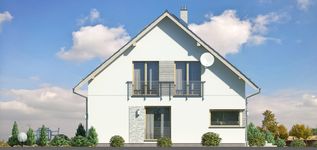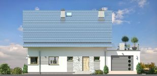 Graficzne opracowanie rzutów poglądowych widocznych na karcie projektu zostało wykonane przez Extradom.pl. Prezentowane przez Extradom.pl wizualizacje wykonane zostały przez autora projektu i należy poczytywać je jedynie za przykład i propozycję wykończenia, wizję architektoniczną autora projektu. Ostateczne wykończenie budynku może nastąpić na wiele sposobów. Szczegółowe rozwiązania zastosowane w oferowanej dokumentacji - w tym również ilość, lokalizacje i wygląd okien, drzwi, kominów - mogą w niewielkim stopniu różnić się od prezentowanej wizualizacji budynku.
