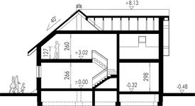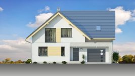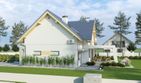 Graficzne opracowanie rzutów poglądowych widocznych na karcie projektu zostało wykonane przez Extradom.pl. Prezentowane przez Extradom.pl wizualizacje wykonane zostały przez autora projektu i należy poczytywać je jedynie za przykład i propozycję wykończenia, wizję architektoniczną autora projektu. Ostateczne wykończenie budynku może nastąpić na wiele sposobów. Szczegółowe rozwiązania zastosowane w oferowanej dokumentacji - w tym również ilość, lokalizacje i wygląd okien, drzwi, kominów - mogą w niewielkim stopniu różnić się od prezentowanej wizualizacji budynku.