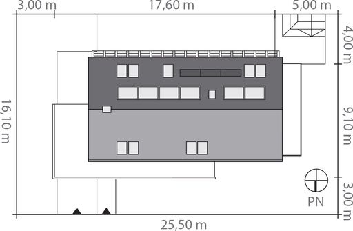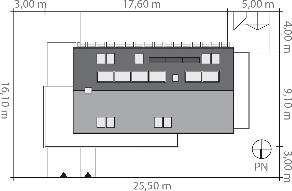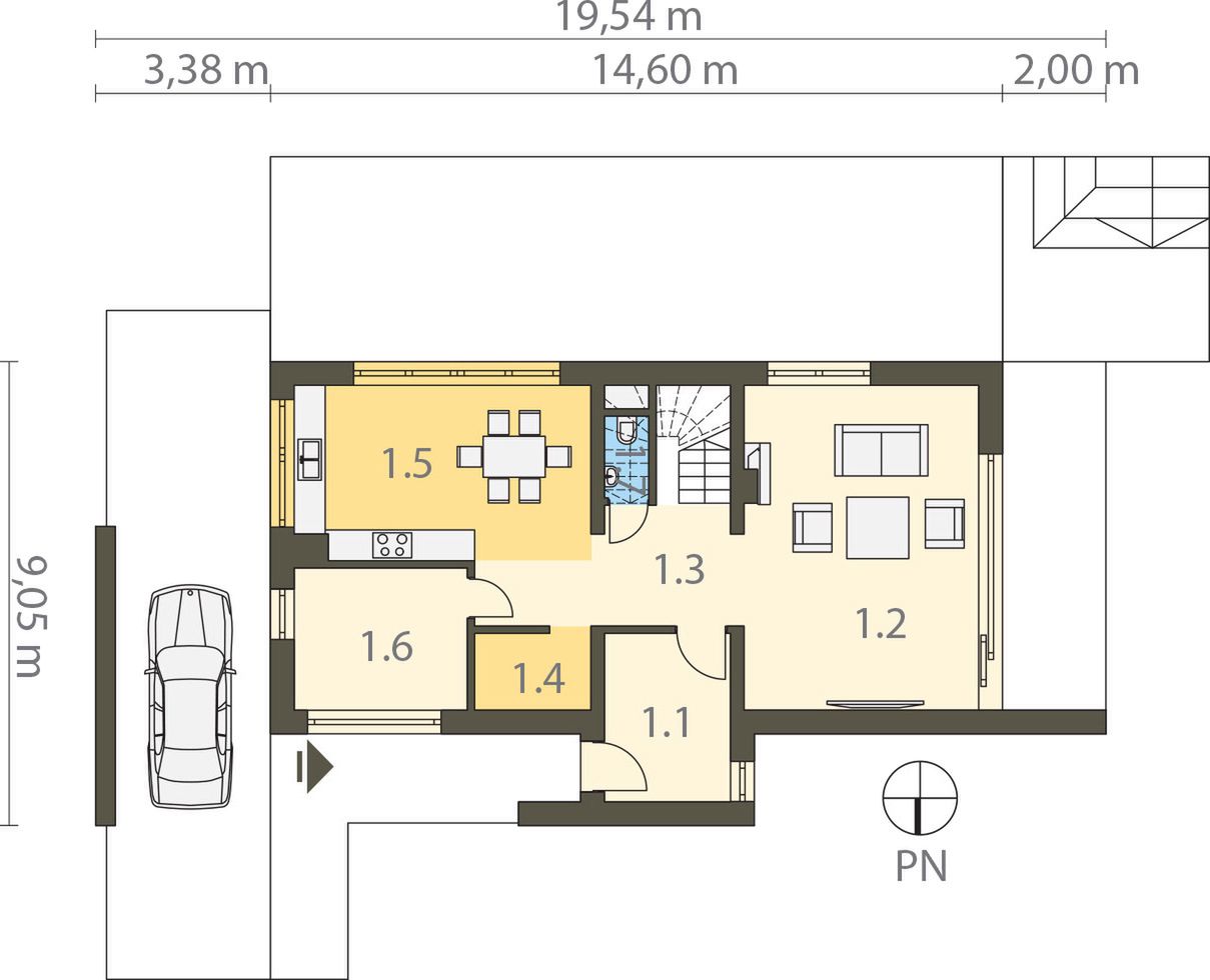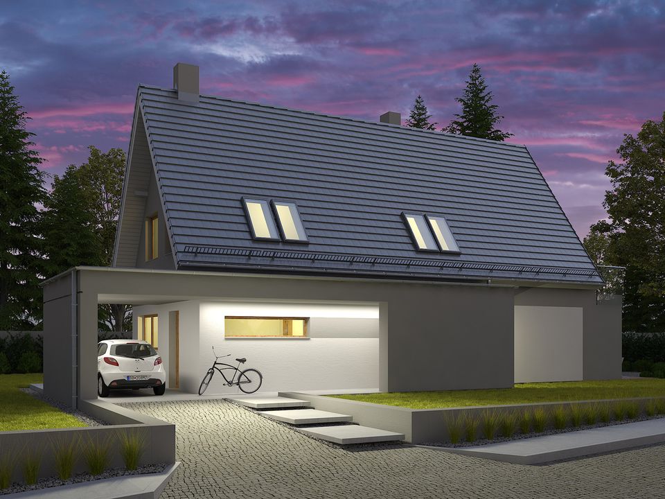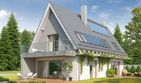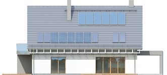 Graficzne opracowanie rzutów poglądowych widocznych na karcie projektu zostało wykonane przez Extradom.pl. Prezentowane przez Extradom.pl wizualizacje wykonane zostały przez autora projektu i należy poczytywać je jedynie za przykład i propozycję wykończenia, wizję architektoniczną autora projektu. Ostateczne wykończenie budynku może nastąpić na wiele sposobów. Szczegółowe rozwiązania zastosowane w oferowanej dokumentacji - w tym również ilość, lokalizacje i wygląd okien, drzwi, kominów - mogą w niewielkim stopniu różnić się od prezentowanej wizualizacji budynku.