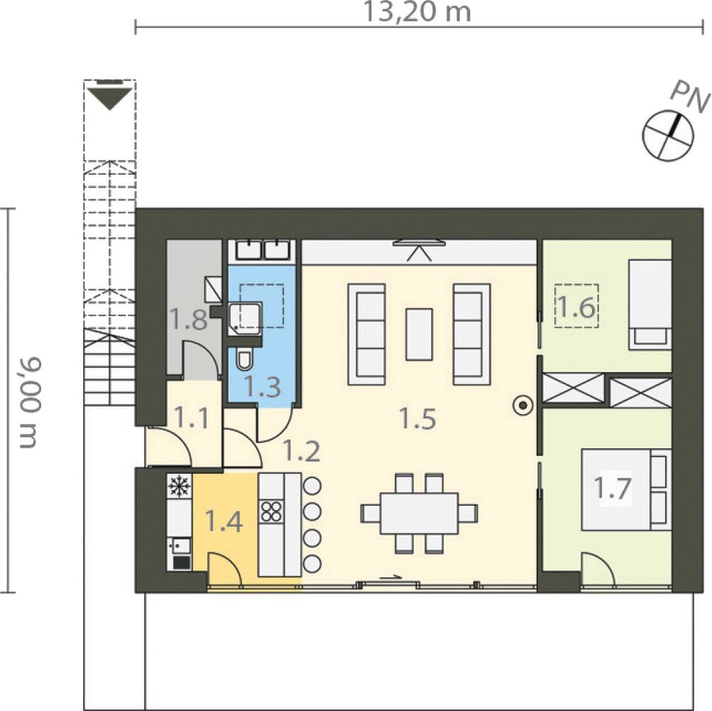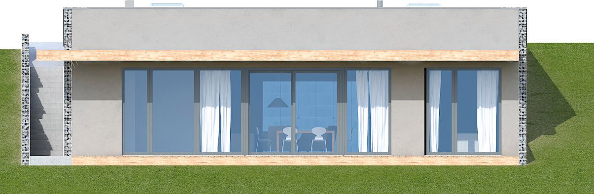 Graficzne opracowanie rzutów poglądowych widocznych na karcie projektu zostało wykonane przez Extradom.pl. Prezentowane przez Extradom.pl wizualizacje wykonane zostały przez autora projektu i należy poczytywać je jedynie za przykład i propozycję wykończenia, wizję architektoniczną autora projektu. Ostateczne wykończenie budynku może nastąpić na wiele sposobów. Szczegółowe rozwiązania zastosowane w oferowanej dokumentacji - w tym również ilość, lokalizacje i wygląd okien, drzwi, kominów - mogą w niewielkim stopniu różnić się od prezentowanej wizualizacji budynku.