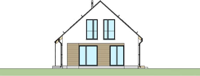 Fundamenty: ławy żelbetowe. Ściany konstrukcja: pustak ceramiczny Porotherm. Ściany elewacja: tynk + drewno. Stropy: żelbetowe monolityczne. Dach konstrukcja: więźba drewniana płatwiowo-kleszczowa. Dach pokrycie: blacha stalowa cynkowana powlekana na rąbek stojący. Schody: żelbetowe. Ogrzewanie kocioł: kocioł gazowy dwufunkcyjny. Ogrzewanie grzejniki: grzejniki ścienne + ogrzewanie podłogowe.